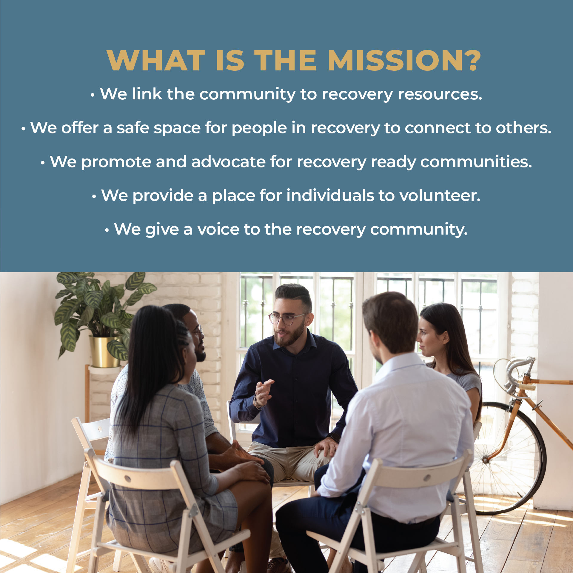 The sole mission of a recovery community center (organization) is to mobilize resources within and outside the recovery community to increase the prevalence and quality of long-term recovery from substance use disorder (SUD). Public education, policy advocacy, and peer-based recovery support services are the strategies for achieving this mission.