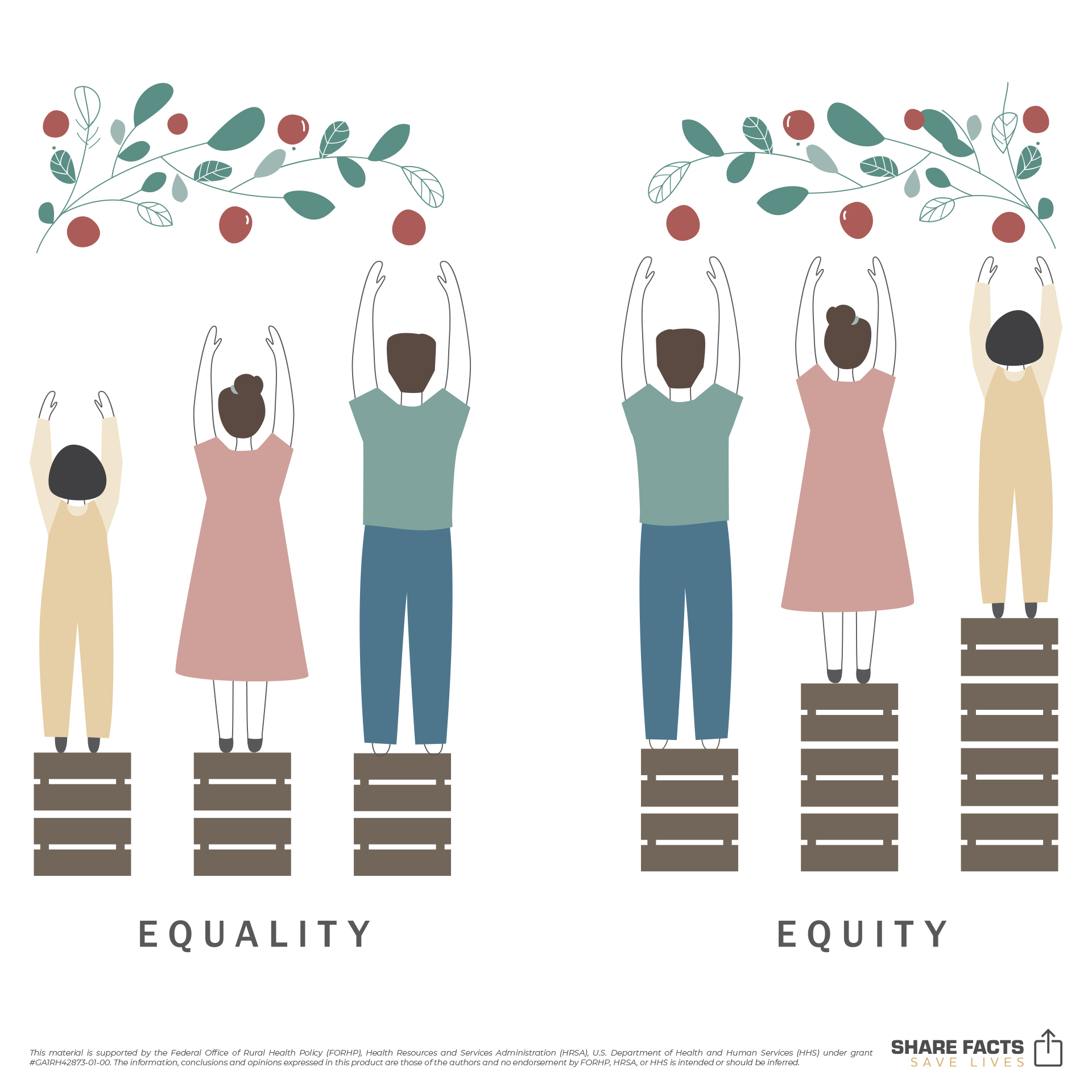 For example, equality would be giving everyone the same type of crate to pick apples from a tree. Equity would be realizing that not everyone can use the same size crate and providing another way for them to reach the apples.