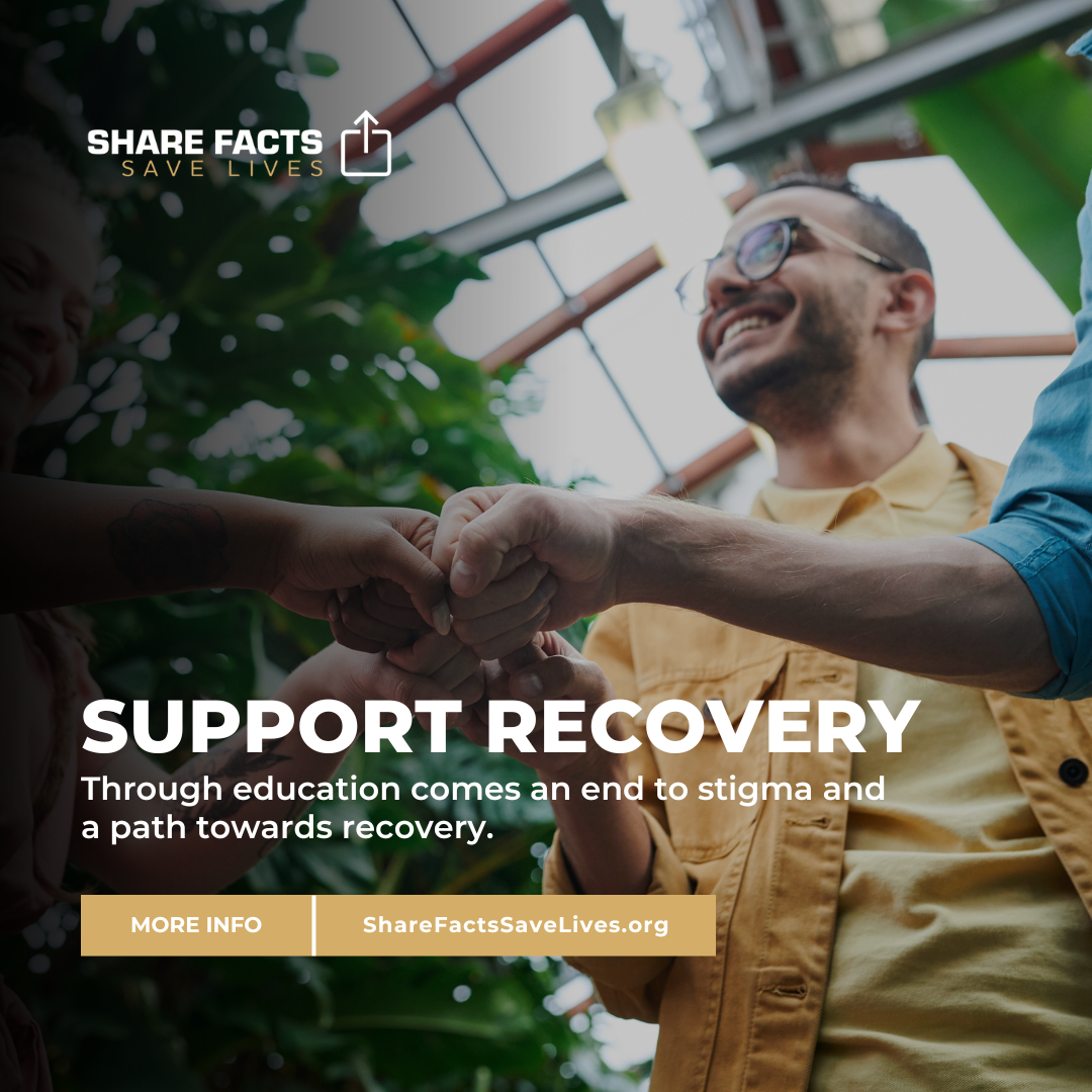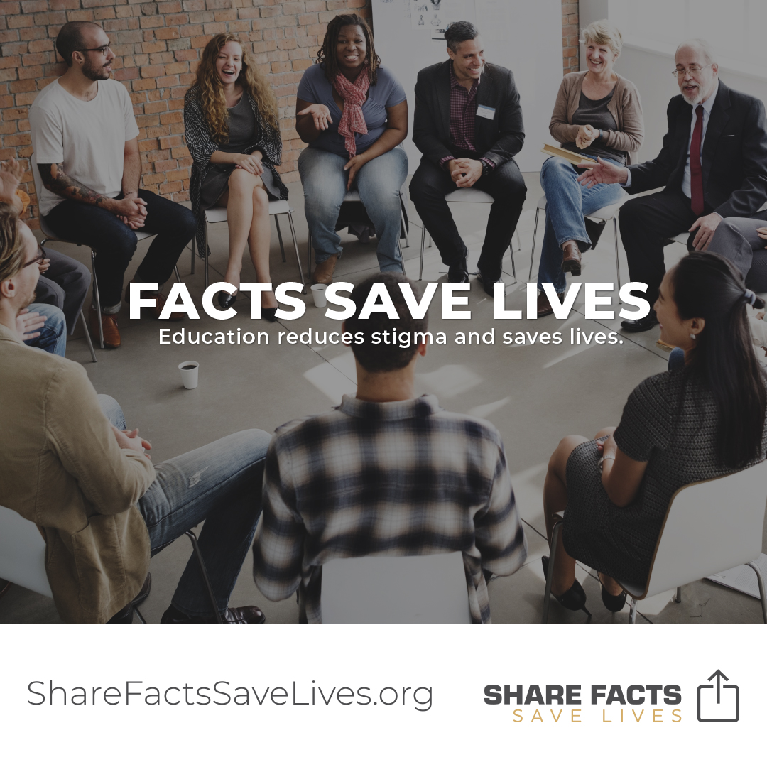 Support the Share Facts Save Lives campaign with shareable content. These materials can be used to educate and create a path towards recovery.