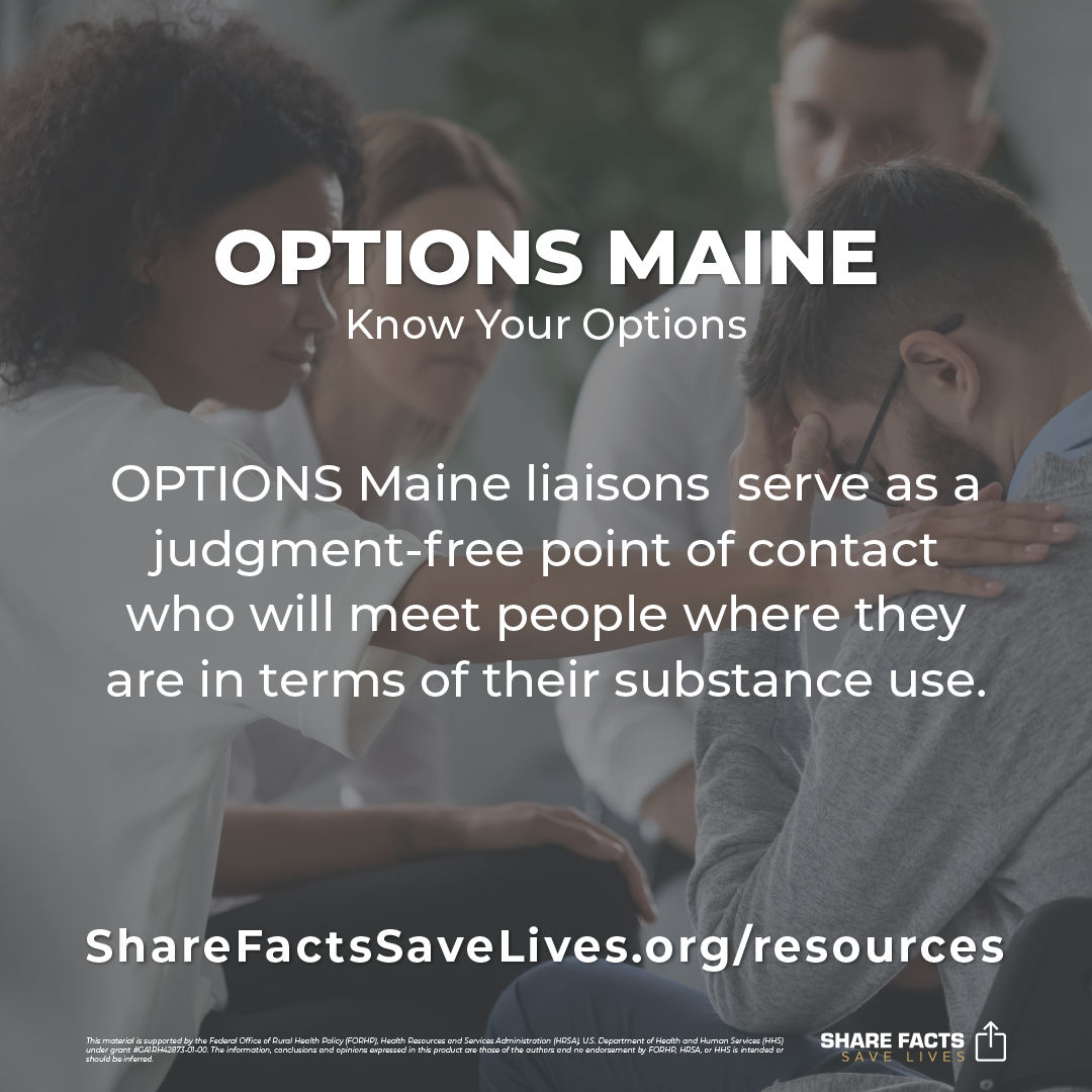 OPTIONS Maine liaisons serve as a judgment-free point of contact who will meet people where they are in terms of their substance use.