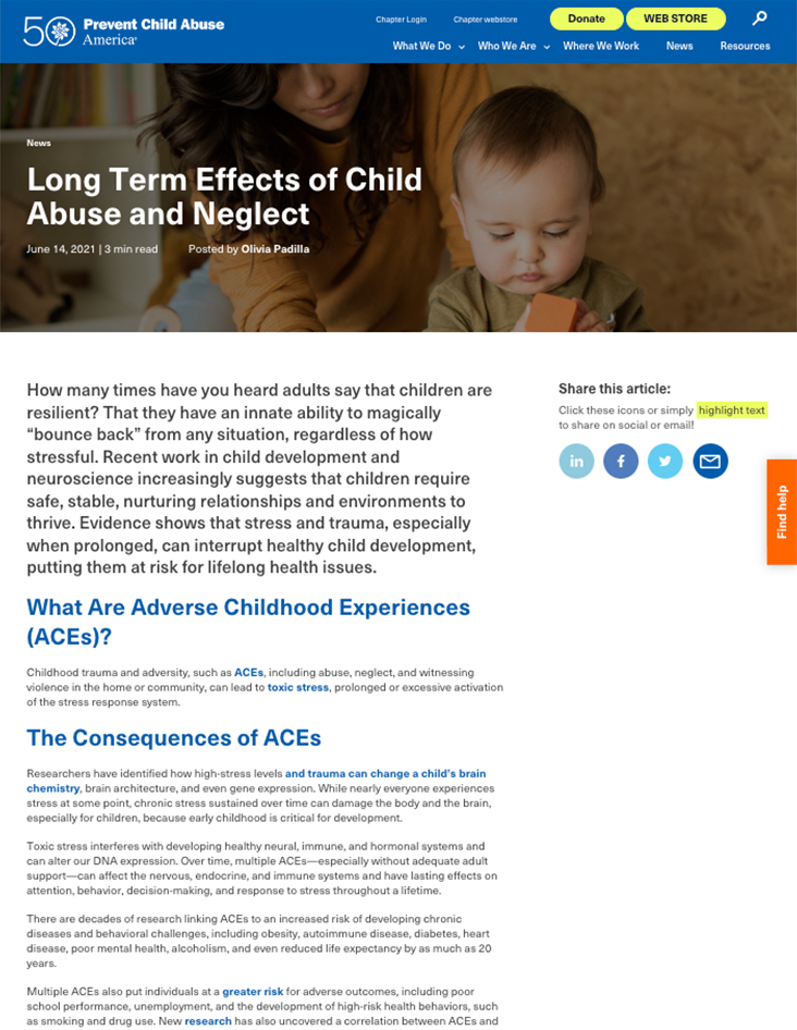 Evidence shows that stress and trauma, especially when prolonged, can interrupt healthy child development, putting them at risk for lifelong health issues including an increased risk for prescription opioid misuse.