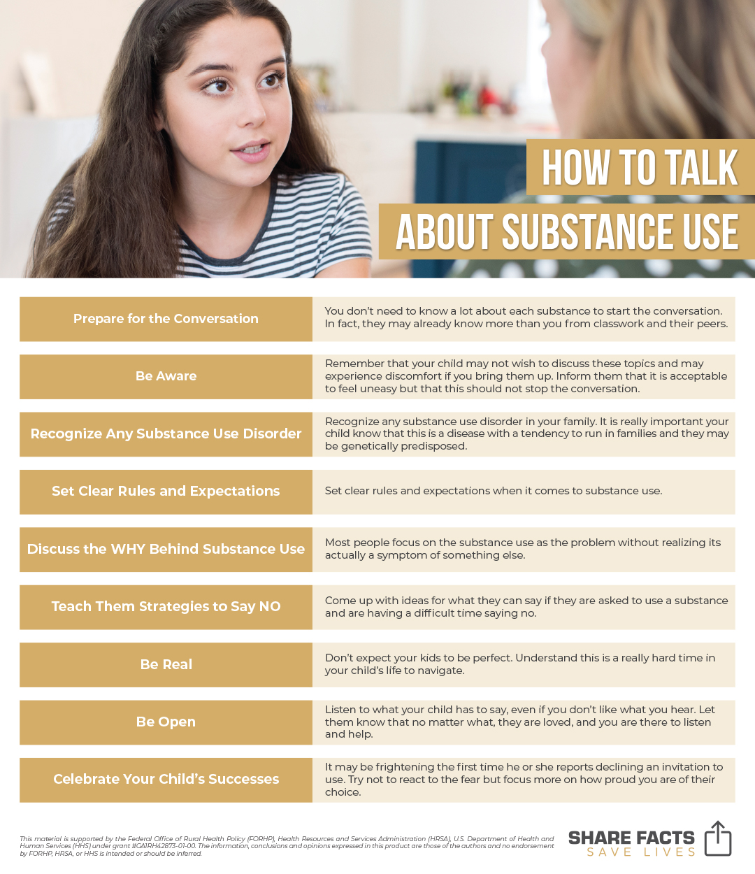 Support the Share Facts Save Lives campaign with shareable content. These materials can be used to educate and create a path towards recovery.
